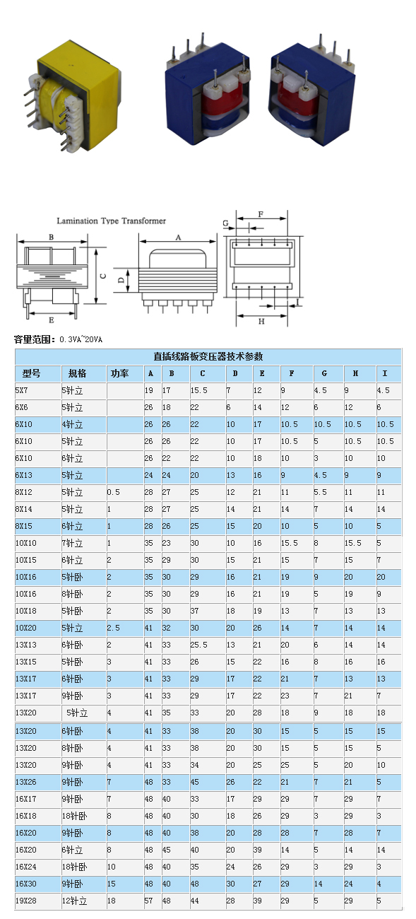 > 直插式线路板变压器